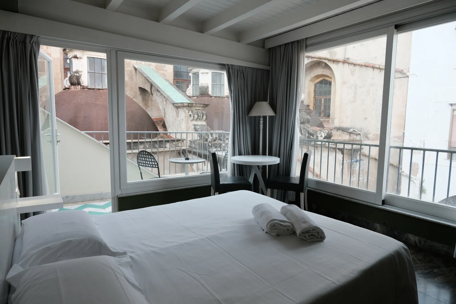 Alcune Deluxe offrono caratteristiche esclusive: una dispone di una terrazza con vista sulla Chiesa e pareti in vetro, perfetta per godere della luce naturale e della bellezza del centro storico; mentre un’altra ha accesso a un piccolo patio interno, ideale per momenti di relax all’aperto in totale privacy.
