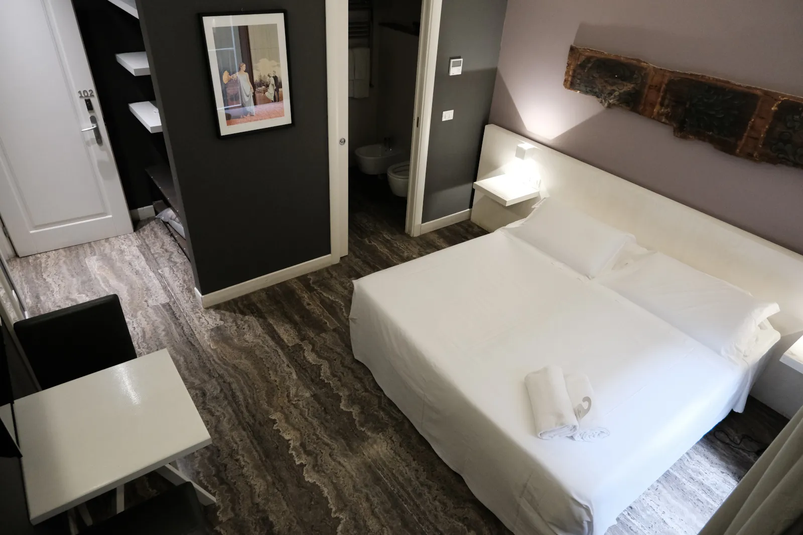 Le camere Doppie CLassic del Quintocanto Hotel & SPA di Palermo uniscono stile moderno e funzionalità per accogliere gli ospiti con un tocco di romanticismo. Raffinati mobili in wengé bianco illuminano e valorizzano gli ambienti. Il comodo letto matrimoniale o twin è pensato per garantire un riposo nel comfort. Queste sistemazioni sono ideali per coppie, viaggiatori singoli o soggiorni di lavoro.